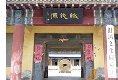 沧州旧城(旧州)东关有个闻名天下的铁狮子,铁狮子东面不远有个铁钱库。铁钱库所在的仿古院落也称“旧城文化展览馆”。除唐末五代时的“滚木礌石”以及红衰草、文殊殿等,最吸引人的就该是那总重四十八吨的一块块唐宋铁钱了。这些铁钱1958年大炼钢铁时曾挖出过。因当时当地技术原因无法将它们熔化,重又埋入地下的铁钱反倒得以保留。已锈蚀成堆的铁钱块,最大的一个据说有七吨多重。其中少数钱币尚可辨出字迹:唐“大和通宝”、宋“大观通宝”、“政和通宝”等。