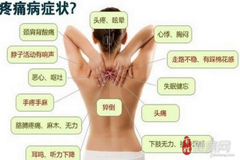 颈椎病又称颈椎综合症,是颈椎骨关节炎、增生性颈椎炎、颈神经根综合症、颈椎间盘脱出症的总称,是一种以退行性病理改变为基础的疾患。主要由于颈椎长期劳损、骨质增生,或椎间盘脱出、韧带增厚,致使颈椎脊髓、神经根或椎动脉受压,出现一系列功能障碍的临床综合征。表现为椎节失稳、松动;髓核突出或脱出;骨刺形成;韧带肥厚和继发的椎管狭窄等,刺激或压迫了邻近的神经根、脊髓、椎动脉及颈部交感神经等组织,引起一系列症状和体征。